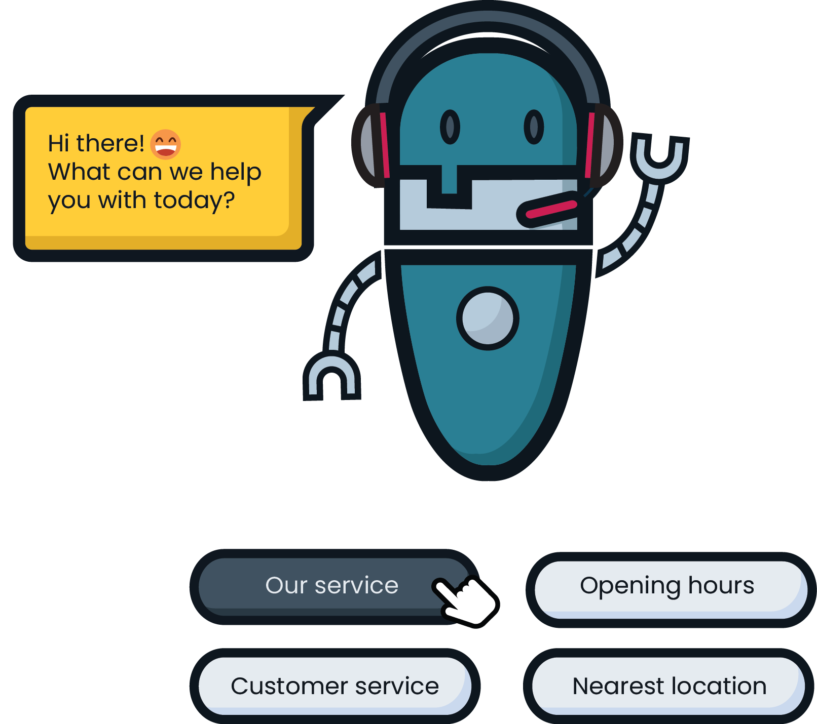 Chatbot berbasis menu yang menawarkan pilihan kepada pengguna melalui opsi yang telah ditentukan sebelumnya. Pengguna tinggal memilih dari opsi yang diberikan untuk melanjutkan percakapan.